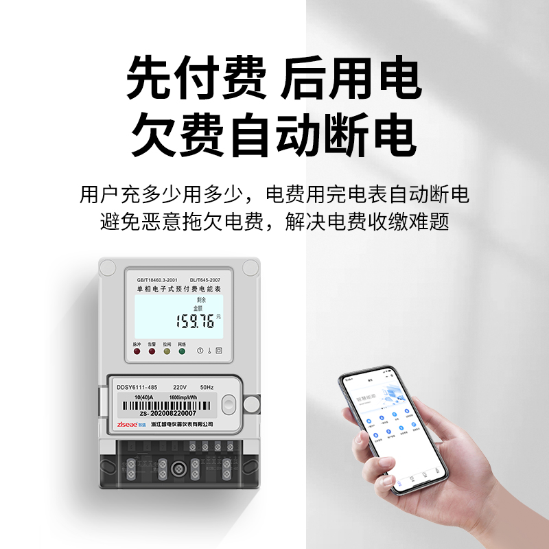 预付费电表,与常规通信装置组网,或通过4G,NB等通信方式,将监测数据上传至预付费管理系统,通过微信小程序进行缴费管理.。