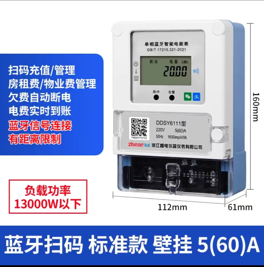 -每个智能电表都有一个额定电流值(如10A、20A、40A、60、80、100等),这决定了它能够安全处理的**持续电流.-例如,对于单相电表,如果额定电流为20A,则理论上它可以支持的最大功率约为4.4kW(220Vx20A)。