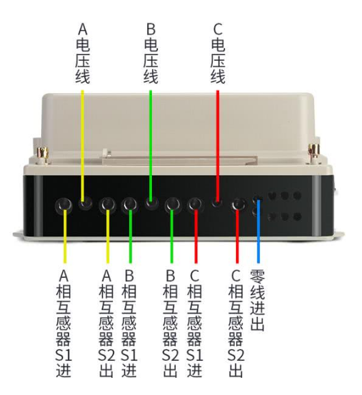 注意147和258之间没有连接片,147分别接三个互感器的S1端,369接互感器的S2端,ABC三条火线从互感器的P1面穿过,三个互感器的S2连一起接地。