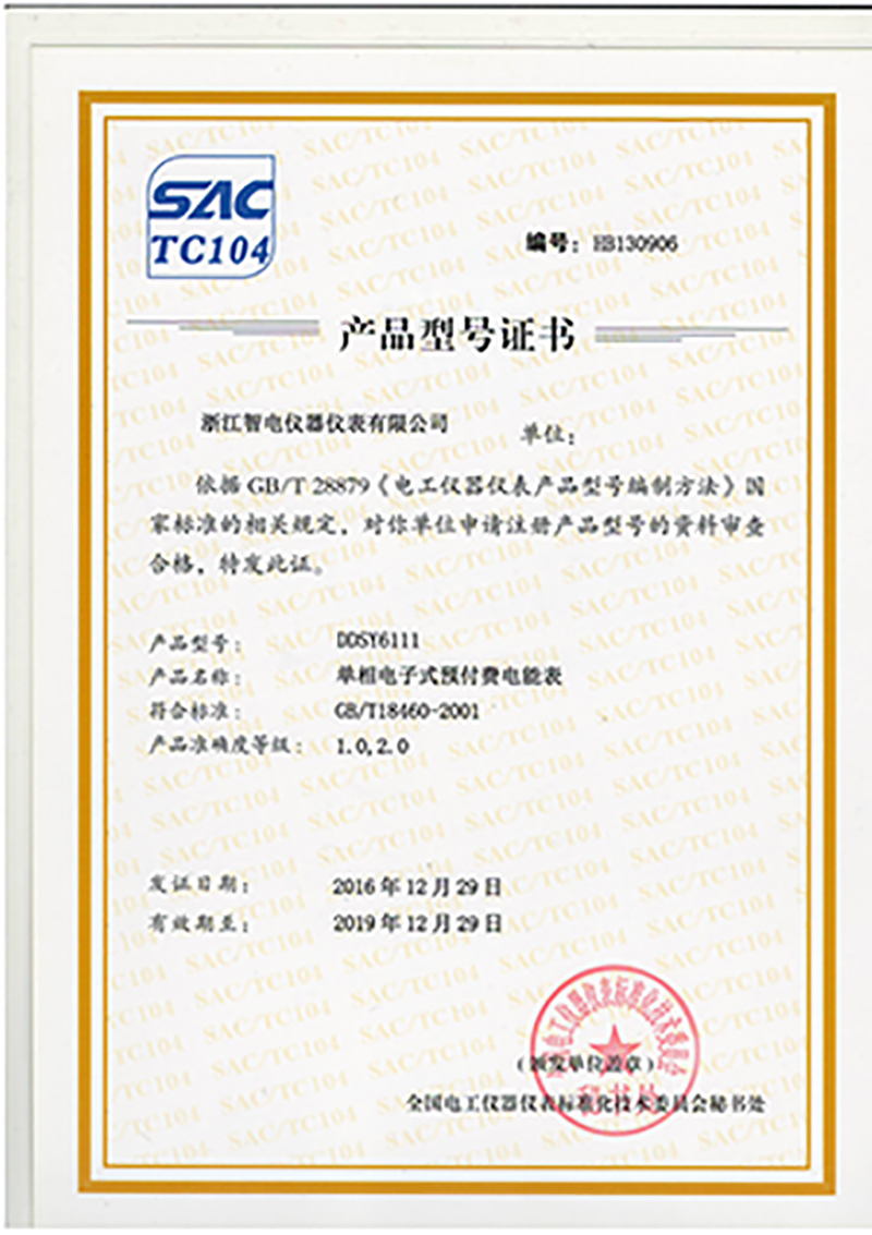 DDSY6111产品型号证书