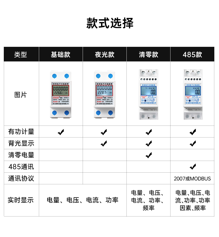 2、采用高品质计度器显示累计电量(6+1位),显示清晰鲜艳直读性好。