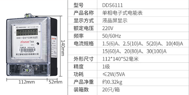 DDS6111型单相电子式电能表,由于采用集成电路和SMT制造工艺,使之测量准确度,稳定性等均得到了可靠保证.适用计量额定频率为50Hz,额定电压为220V的单相交流有功电能.