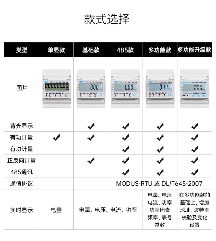 5.显示功能 :采用宽温大液晶方式显示各类信息;电能量显示位数为6位整数,2位小数,具有参数自动轮显功能。