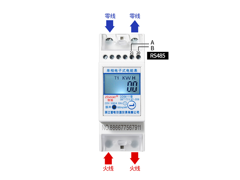 7、具有RS485通讯功能,可用连接RS485通讯网络进行远程抄表和集中管理,标准配置通讯协议支持DL/T645-2007或Modbus-RTU协议