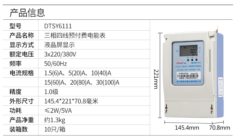 DTSY6111系列插卡式三相电子式预付费电能表系我公司采用集成电路,16位A/D转换、数字乘法器、应用数字采样处理技术并单片机处理系统进行数据的采集、处理和保存及应用SMT工艺制造的新型仪表。适用于计量额定频率为50Hz或60Hz的三相三线或三相四线交流电网中有功电能的消耗。