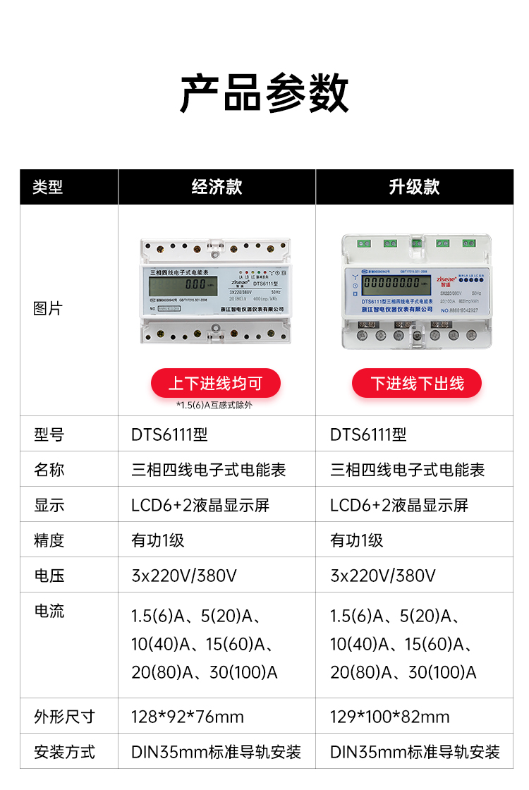 DTS6111、DSS6111型三相有功电能表,是一种室内三相电能表,是我公司为了适应我国电网改造,适应我国国情而设计开发的电能表。它具有较高的准确度和可行性。本仪表采用国际先进的低功耗模集成电路技术及SMT先进工艺,关键元器件选用进口品牌、长寿命器件,提高了产品的可靠性,延长了使用寿命。准确计量有功电能,且可以通过红外通讯方式抄电量,读数直观且使用方便。本仪表设计符合标准GB/T 17215.321-2008《1级和2级静止式交流有功电能表》、GB/T 17215.323-2008《2级和3级静止式交流无功电能表》。