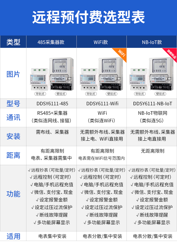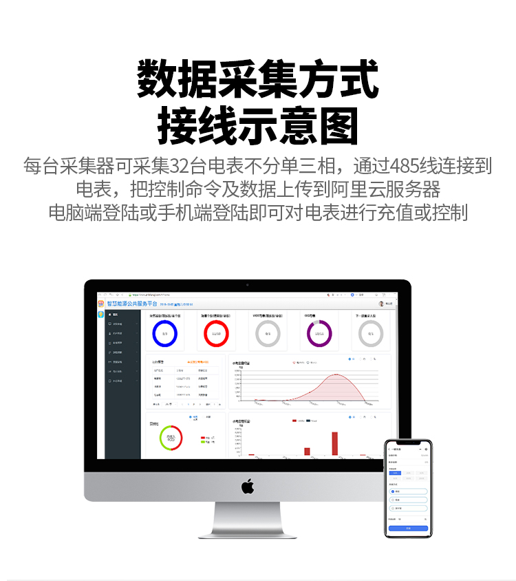 本公司DDSY6111/DDZY6111远程智能电表与本公司远程抄表系统和手机APP配套使用,远程抄表管理系统具有实时抄表、定时抄表外,还提供了设备管理功能,如告警、余额短信通知、远程充值、手机抄表、手机查询、手机充值、预付费、后付费、自助充值机充值、远程拉合闸、各种查询报表、统计报表下载等功能。