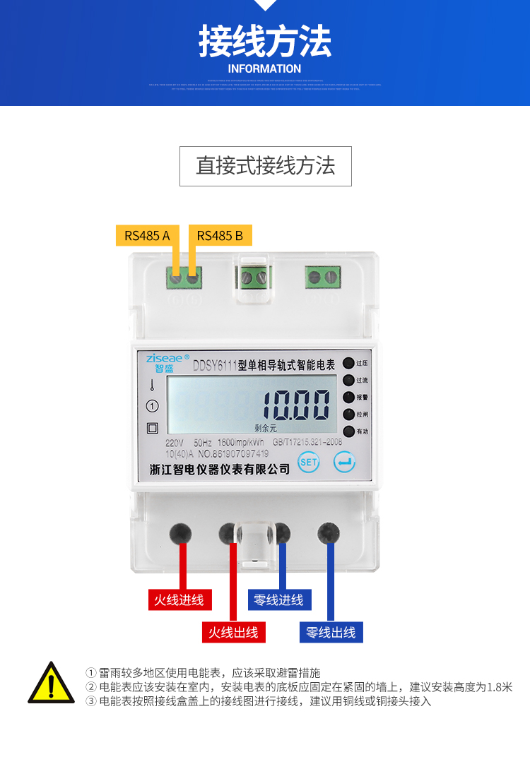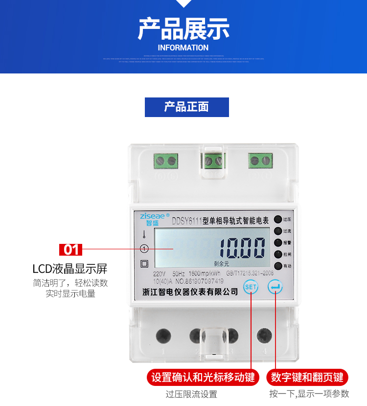 一、导轨式单相远程付费预付费电能表
