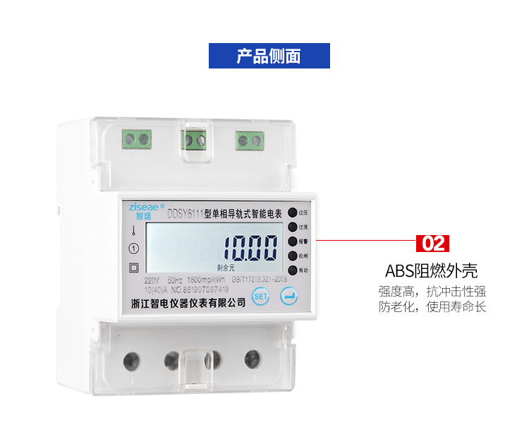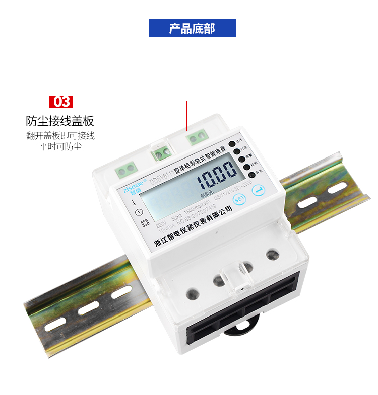 DDSY6111型远程导轨式单相预付费电能表,采用单片微控制器进行数据采集,处理和保存。具有良好的抗电磁干扰,低功耗,高过载、准确度高,寿命长等优点。其性能指标符合GB/T 17215.321-2008《1级和2级静止式交流有功电度表》中对电子式有功电度表的技术要求,符合GB/T15284-2002《多费率电能表 特殊要求》对复费率电能表的技术要求,并符合GB/T18460-2001《IC卡预付费售电系统》的各项技术要求。通信规约可支持DL/T 645-2007《多功能电能表通信规约》,为用电自动化管理提供了必备的条件。