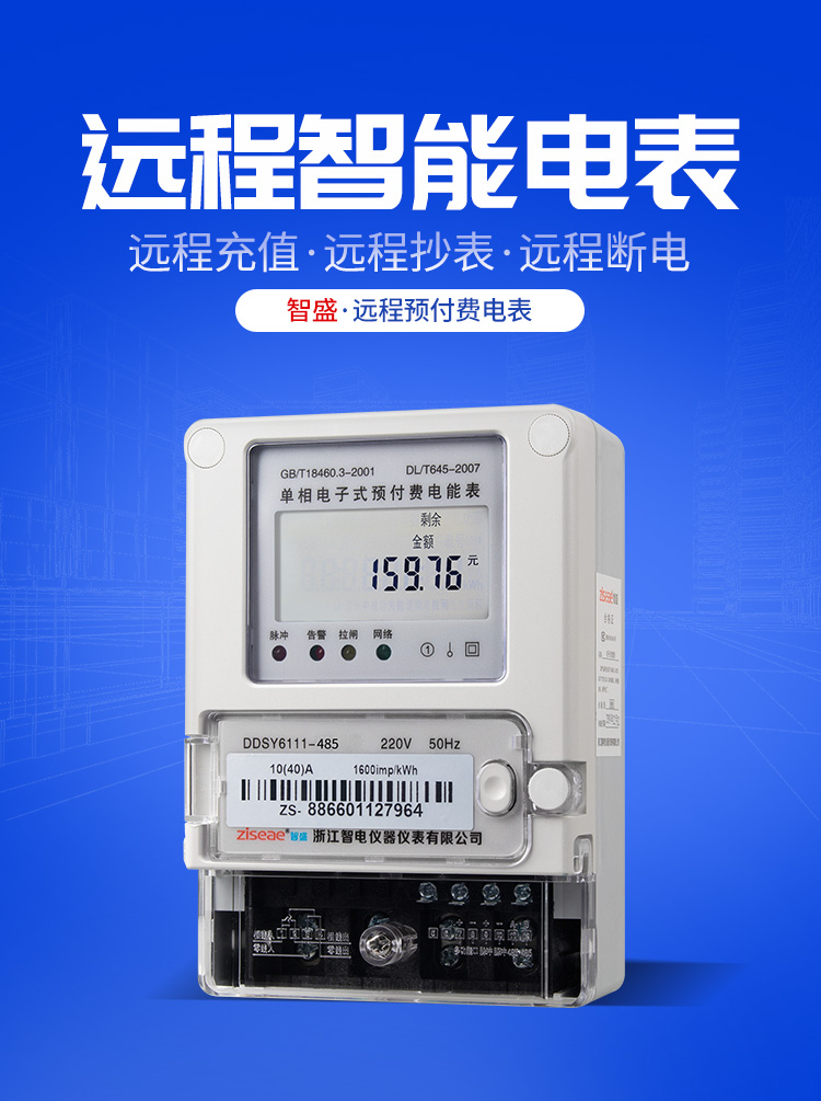 本公司DDSY6111/DDZY6111远程智能电表与本公司远程抄表系统和手机APP配套使用,远程抄表管理系统具有实时抄表、定时抄表外,还提供了设备管理功能,如告警、余额短信通知、远程充值、手机抄表、手机查询、手机充值、预付费、后付费、自助充值机充值、远程拉合闸、各种查询报表、统计报表下载等功能。
